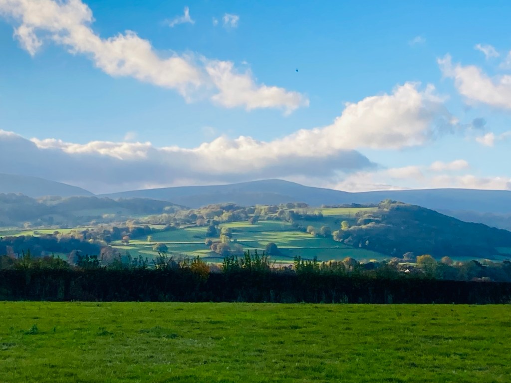 The sun exquisitely striking the hills through the clouds this morning on my way into town.